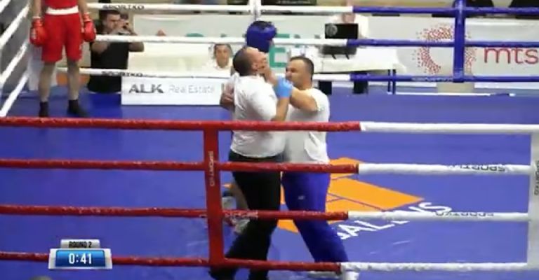 Así fue el momento en el que entrenador de boxeo se peleó con un árbitro en Serbia