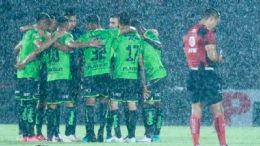 Fue al minuto tres de la segunda parte cuando un balón en el área salió rebotado a la posición donde Jonathan Dos Santos, a la altura del área chica, recibió y disparó de media vuelta para que le pasara entre las piernas a Luis Olivas y se clavara al poste contrario de la portería de Raúl Gudiño.