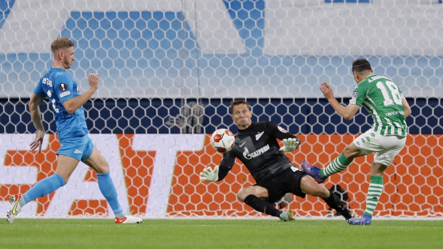 Fue al minuto 41 de la primera parte tras un error en la salida del Zenit que Guido Rodríguez recuperó el esférico y filtró un pase preciso para Guardado, quien con su educada pierna zurda definió perfecto ante la salida del guardameta Kershakov.