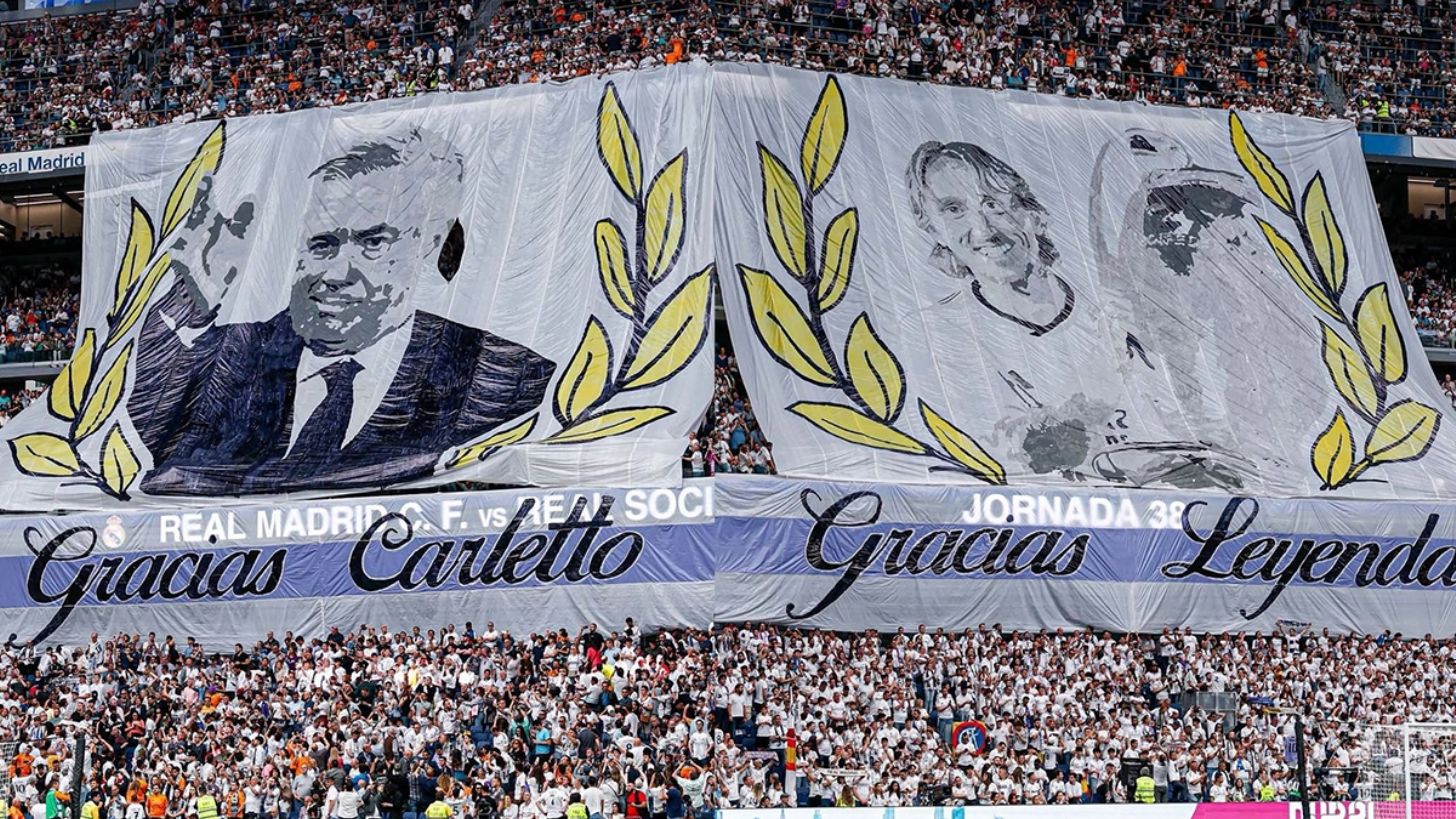 Con dos pancartas gigantes en las gradas fue como la afición del Real Madrid les brindó el agradecimiento a Carlo Ancelotti y a Luka Modric, quienes vivieron su último partido como madridistas en el Estadio Santiago Bernabéu: en la victoria de su club por 2-0 sobre la Real Sociedad. El autor de los dos tantos del gane fue Mbappé.