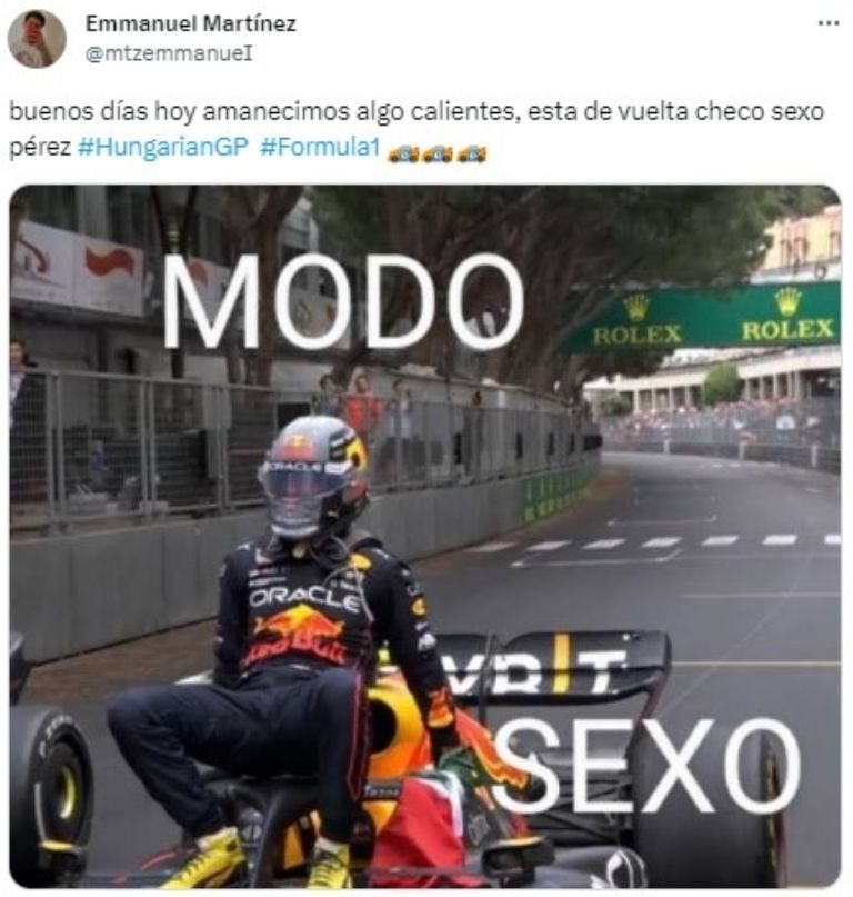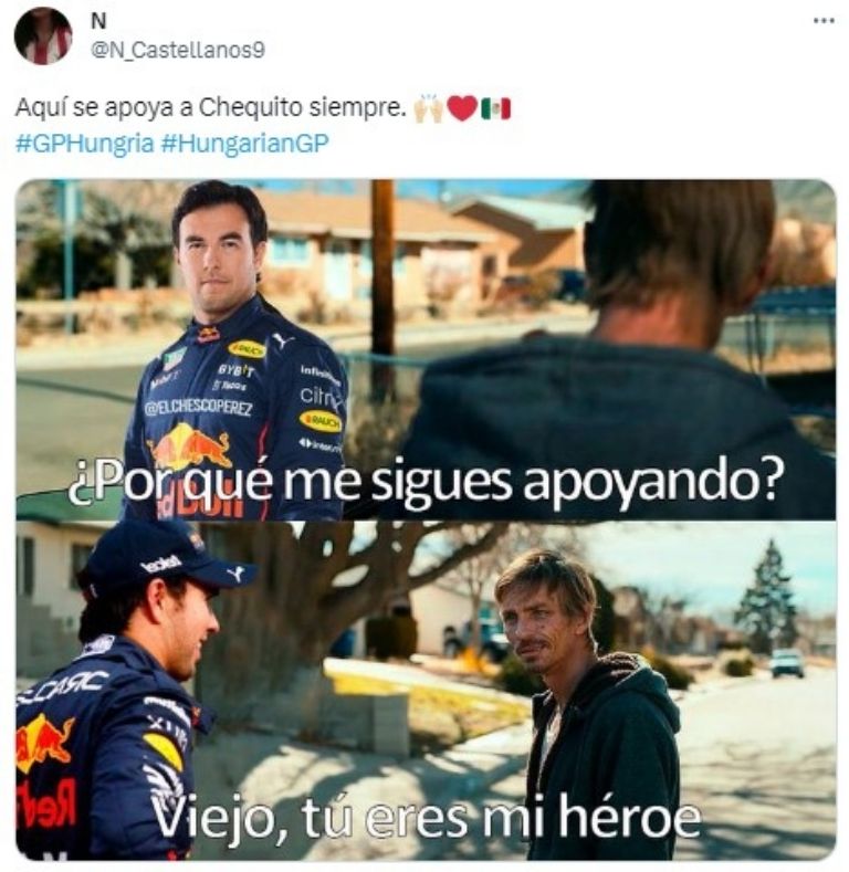El tapatío Checo Pérez reafirmó su condición de favorito en la Fórmula 1 tras consumar una nueva hazaña en el GP de Hungría. El piloto de la escudería Red Bull concretó una remontada de alarido para afianzar el podio, sitio que no había logrado alcanzar en semanas, y los memes no dudaron en celebrarlo.