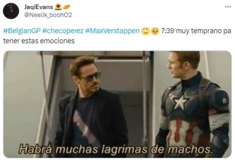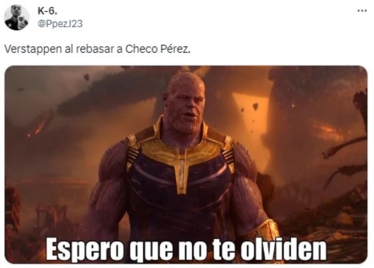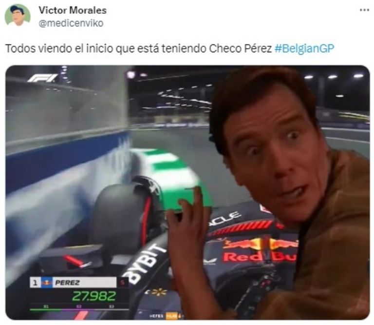Pero Max Verstappen, que había arrancado como sexto, no perdonó a Checo Pérez: en la vuelta 17 dentro del Autódromo Spa-Francorchamps, lo desbordó y no cedió por el resto del circuito. Por eso es que los memes reflejaron la decepción sobre el primer lugar que se le esfumó al tapatío en el GP de Bélgica.
