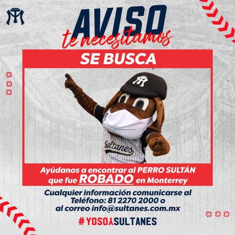 Se trata del hurto de la botarga de su mascota, el 'Perro Sultán', quien se encarga de animar a los aficionados y acompañar al equipo en los partidos de la liga, aunque el año pasado no tuvo tanta actividad debido a la pandemia por coronavirus que dejó sin temporada a la LMB.