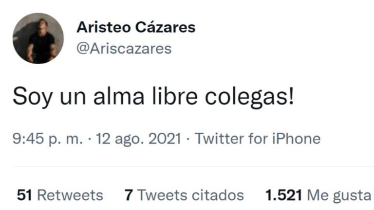 Soy un alma libre colegas”, escribió Aristeo, lo que disparó una serie de comentarios de sus seguidores.
