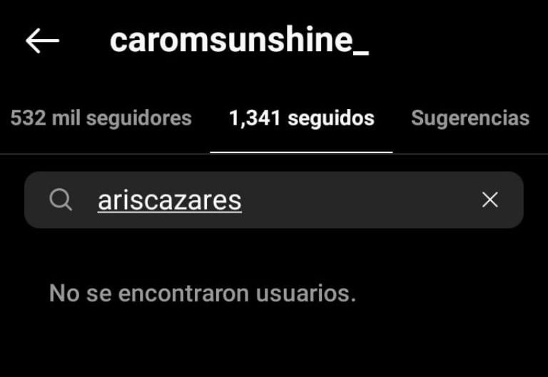Después, se pudo comprobar que Carolina Mendoza ya no sigue la cuenta de Instagram de Aristeo, e incluso borró ya todas las fotos en las que aparecían juntos.
