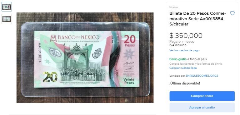 Te adelantamos que el billete de 20 pesos en cuestión es reciente. Si el Banco de México (Banxico) lo tasó en dicho valor nominal, ¿Por qué es que este material ronda los 300 mil pesos en Internet? Si tienes dudas acerca de su precio, revisa lo que su propietario advirtió a través de la plataforma Mercado Libre.