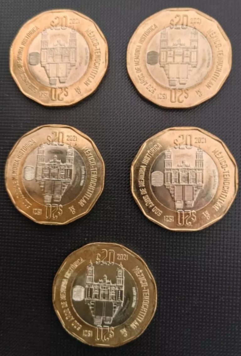 Las monedas de 20 pesos en cuestión corresponden a la familia C1 del Banco de México (Banxico); por lo que tienen cerca de 2 años en el territorio nacional. Fueron puestas en circulación el 27 de septiembre de 2021 y todas guardan la misma iconografía conmemorativa: la de los 500 años de memoria histórica de México-Tenochtitlan.