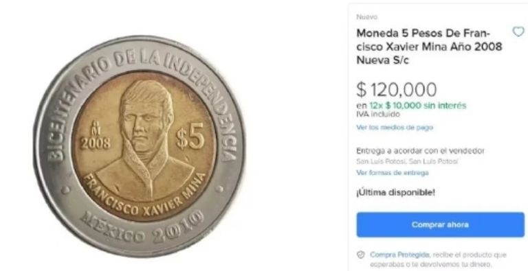 Este ejemplar destaca sobre las demás porque comenzó su circulación en el 2008 y porque, además, no es tan cotidiana como otros artículos, lo cual hace que su precio en redes sea más elevado. No obstante, la característica principal de este artefacto guarda relación con el hecho de que cuenta con el rostro de Francisco Xavier Mina.