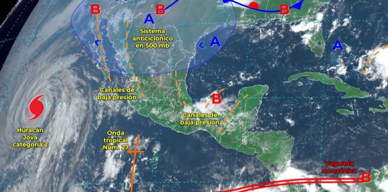 Mientras eso ocurre y el monzón mexicano sigue afectando con lluvias a casi todo México, sobre estados del litoral del Pacífico y del Golfo de México, así como en el noroeste, norte y noreste del país, además de la Península de Yucatán se mantendrá el ambiente muy caluroso.