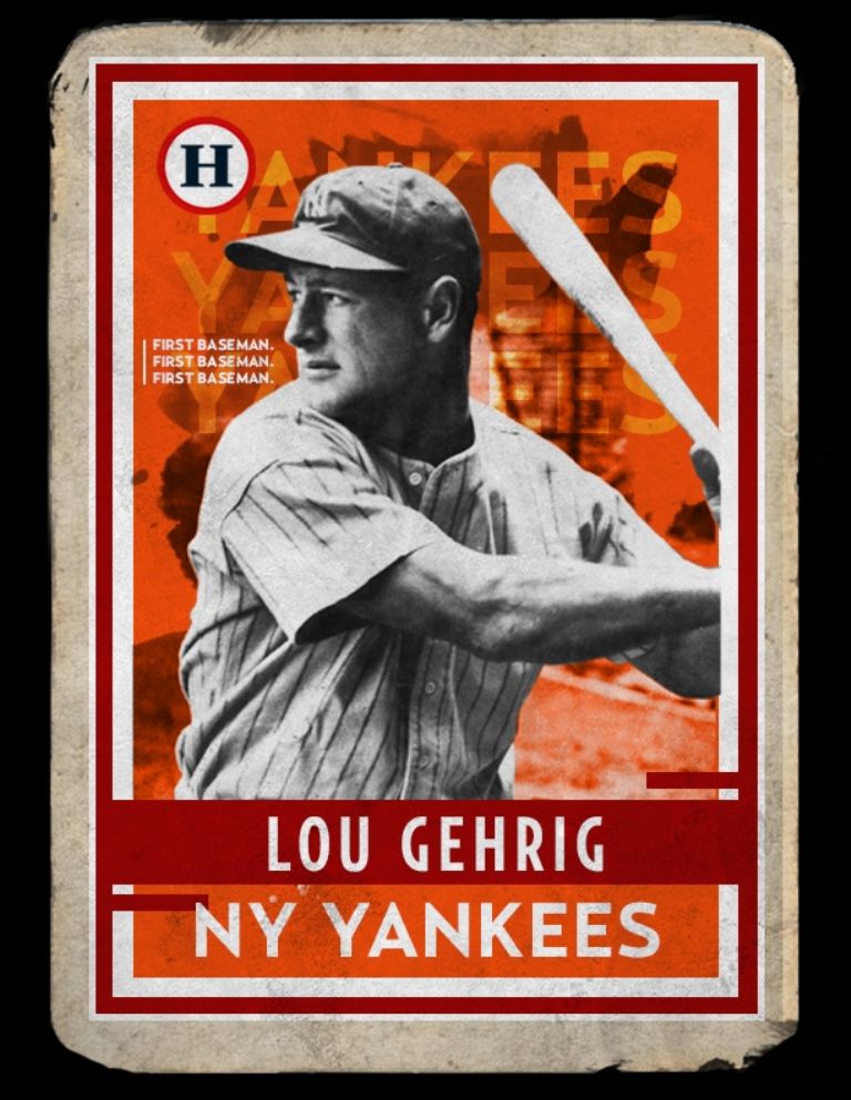 Gehrig, uno de los bateadores más confiables que han existido, capitán de su equipo, gran atleta y un hombre muy honesto. Él pensaba ser un esclavo del béisbol, porque realmente amaba el juego, odiaba pensar en tomarse un día libre cuando estaban jugando. Él tuvo esa grandiosa mentalidad que lo hizo triunfar. Usó en su jersey el número 4, y jugó la primera base.