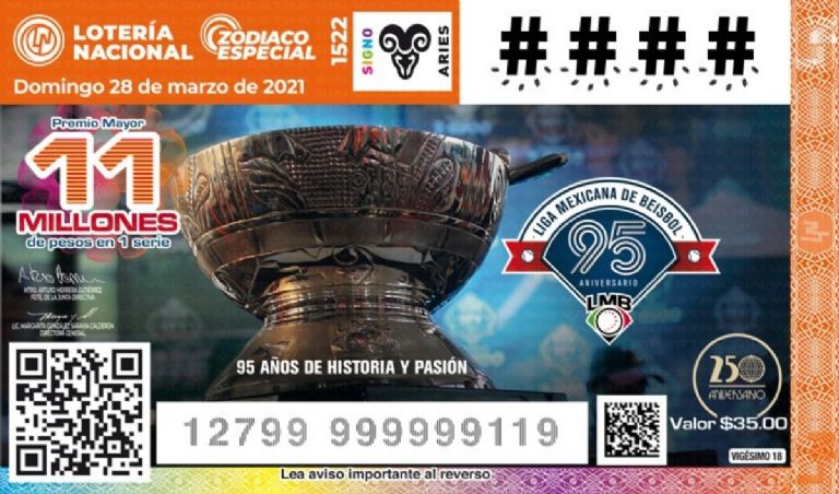 El cachito de la LMB será parte del Sorteo Zodiaco Especial No. 1522 con el festejo de su 95 aniversario, el cual debía celebrarse el año pasado y, sin embargo, se pospuso por el brote de Covid-19.