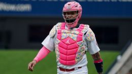 En las redes sociales circulan fotografías del último partido en el que participó, lo curioso es que en la visera de su gorra hay una enorme mancha blanca.