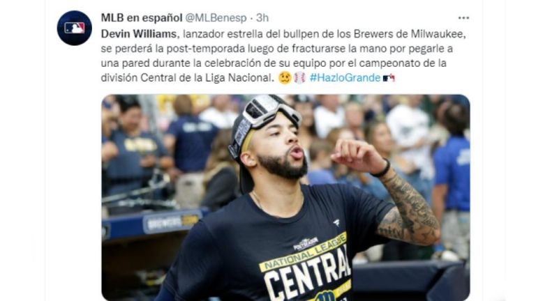 Increíble, pero cierto. Lo que fue una celebración por el pase a los playoffs de las Grandes Ligas se convirtió en un inforerno para el lanzador de los Milwaukee Brewers, Devin Williams, quien no podrá jugaro la postemporada, aunque en la franquicia piden un milagro para que el relevista pueda ver acción.