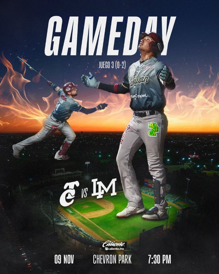 Los campeones siguen intratables en la Liga Mexicana del Pacífico (LMP), tanto que después de ganar el primero y segundo duelo Cañeros vs Tomateros, la noche de este jueves 9 de noviembre los monarcas de Los Mochis buscarán la barrida ante los de Culiacán en el Juego 3 de la serie que disputan en el Estadio Chevron Park y que aquí te decimos a qué hora y qué canal lo transmitirá.
