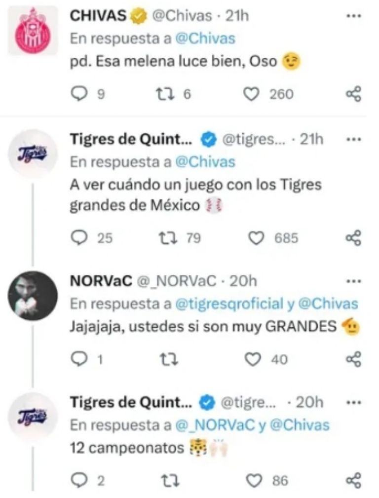 Esta imagen se volvió una de las más llamativas no por lo que significó, sino por una de las contestaciones que vino directamente de una de las escuadras de la Liga Mexicana de Béisbol. Se trata de los Tigres de Quintana Roo, equipo que forma parte de la LMB y que no dudó en burlarse de ellos tras haber caído en su cancha y frente a su gente.