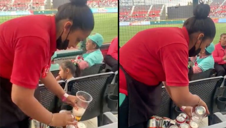 El video que circula en redes sociales es muy nítido y deja ver que la vendedora de cervezas toma las sobras de latas en lugar de abrir unas nuevas, luego completaba lo que faltaba del vaso con otras, aunque no es la primera vez que se ve esto en un estadio deportivo del país.