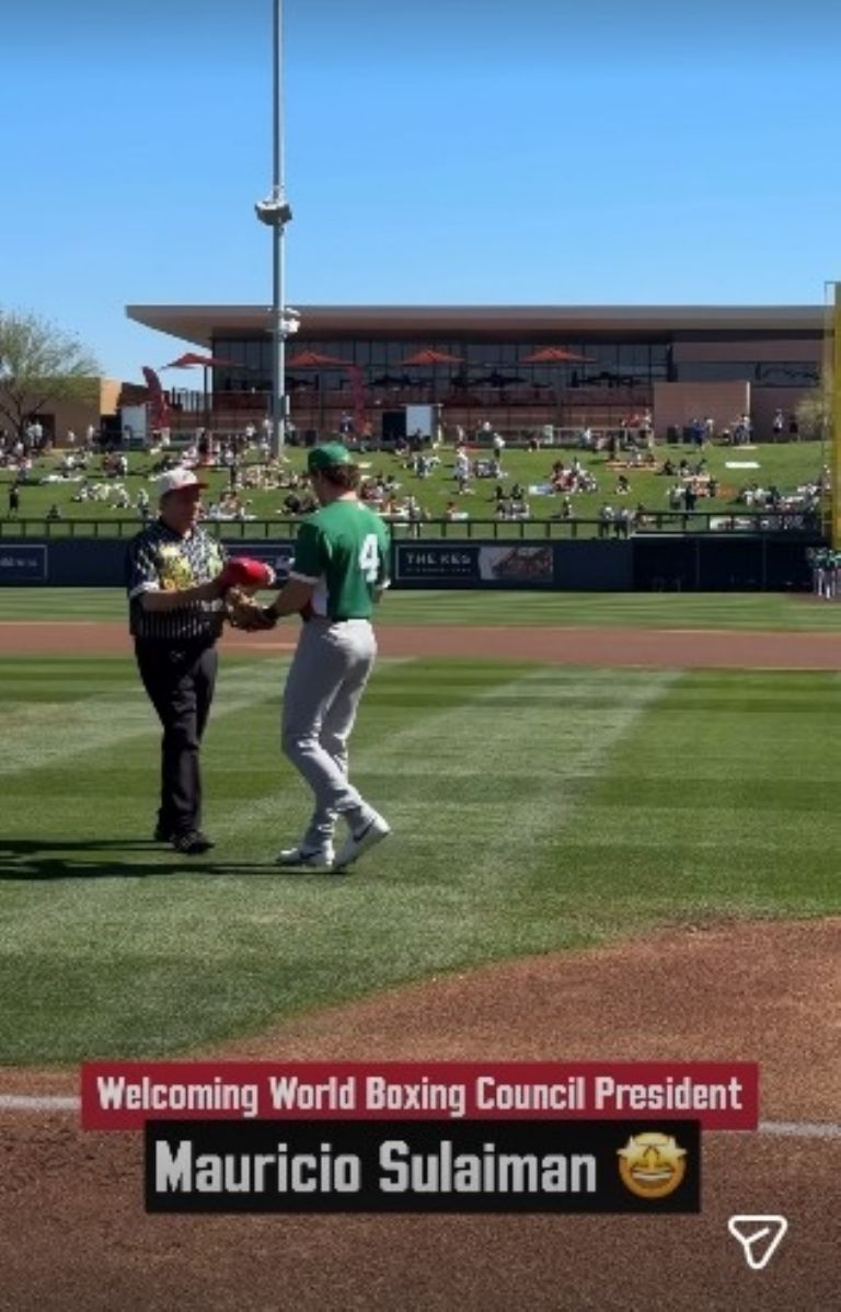 El presidente del Consejo Mundial de Boxeo (CMB), Mauricio Sulaimán, es un gran fan del beisbol y esta tarde tuvo la oportunidad de lanzar la primera bola del juego.