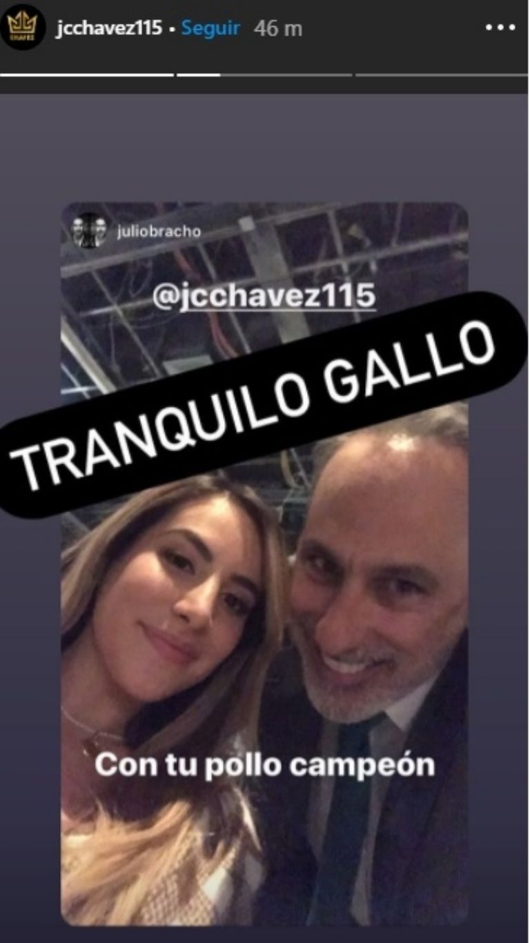 Sin embargo, en el texto de la imagen, Bracho comentó: "Con tu pollo campeón" y en otra de las imágenes aparecen sonriendo, pero Julio César Chávez se lo tomó con buen humor y respondió: "Tranquilo Gallo".
