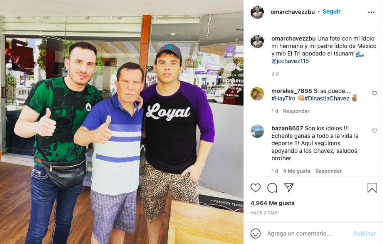 "Una foto con mi hermano y mi padre, ídolo de México y mío. El Tri apodado el tsunami", escribió Omar Chávez en sus redes sociales.