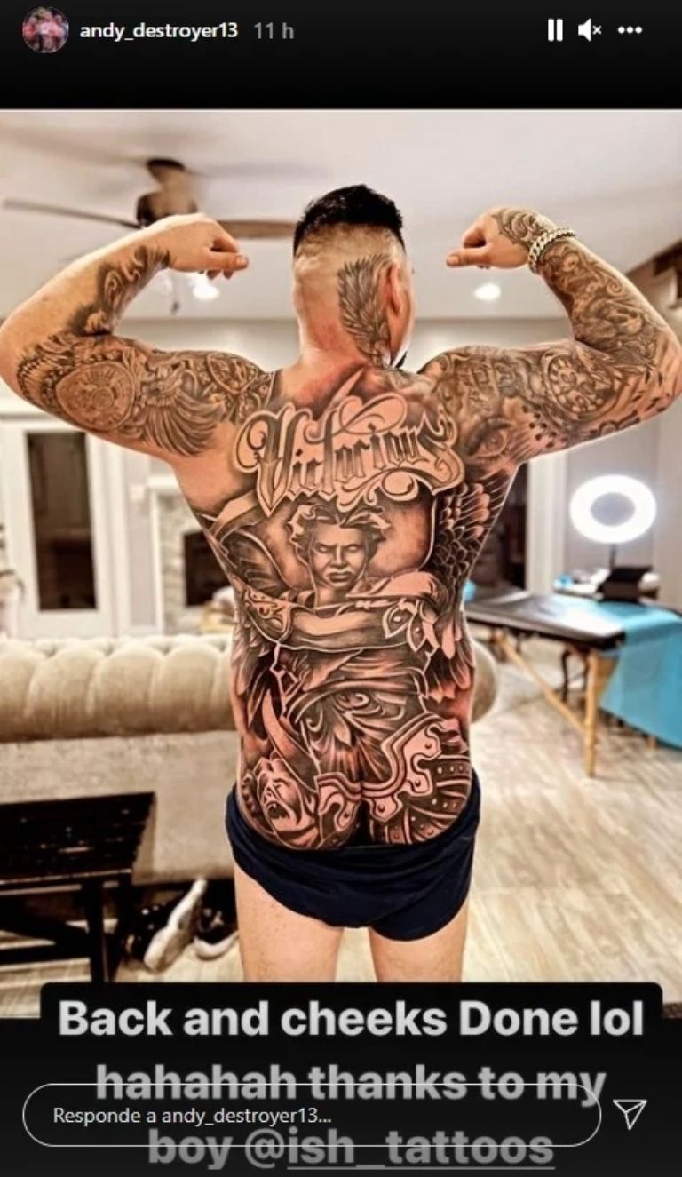 En su cuenta de Instagram, Andy, siempre asiduo a las excentricidades, compartió la imagen de un impresionante tatuaje que le cubre toda su espalda e incluso los glúteos.