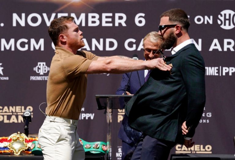 El pasado 21 de septiembre, 'Canelo' y Plant intercambiaron golpes y empujones, resultando el estadounidense con una cortada en el pómulo derecho.