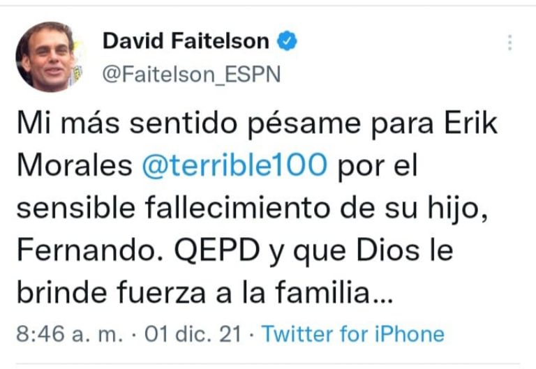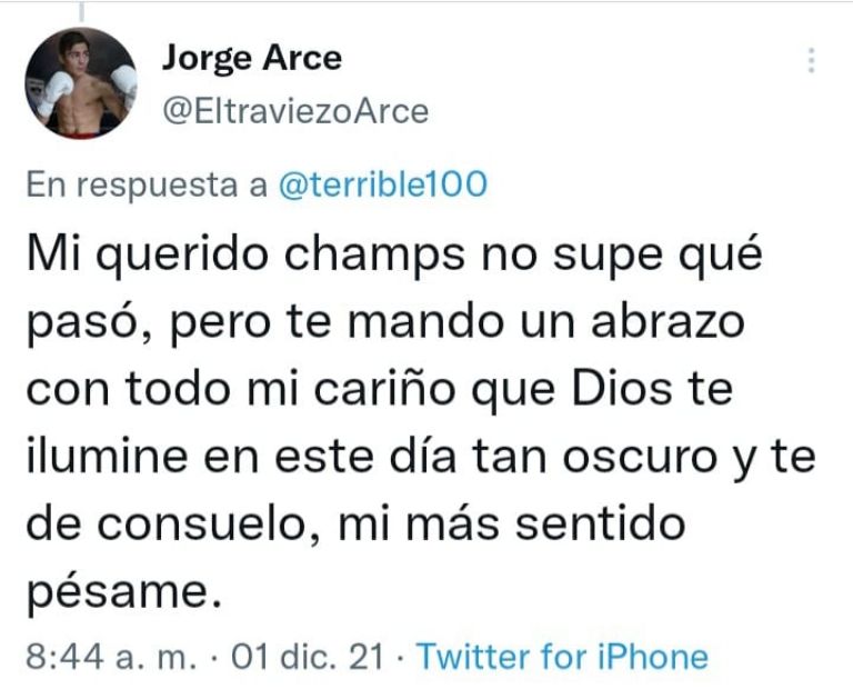 Las reacciones no se hicieron esperar y diferentes figuras del pugilismo, el periodismo deportivo e incluso personajes de gobierno y el espectáculo enviaron sus mensajes de apoyo para el Terrible Morales, quien no reveló cuál fue la causa del sensible fallecimiento de su primogénito.