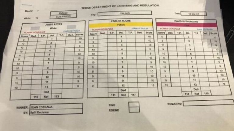 En un combate cerrado y de gran emoción, Estrada terminó como ganador por decisión dividida. El juez David Sutherland dio ganador a 'Gallo' por 115-113, Jesse Reyes favoreció a 'Chocolatito' por 115-113, pero Sucre calificó un cuestionado 117-111, que empañó una noche épica de boxeo.