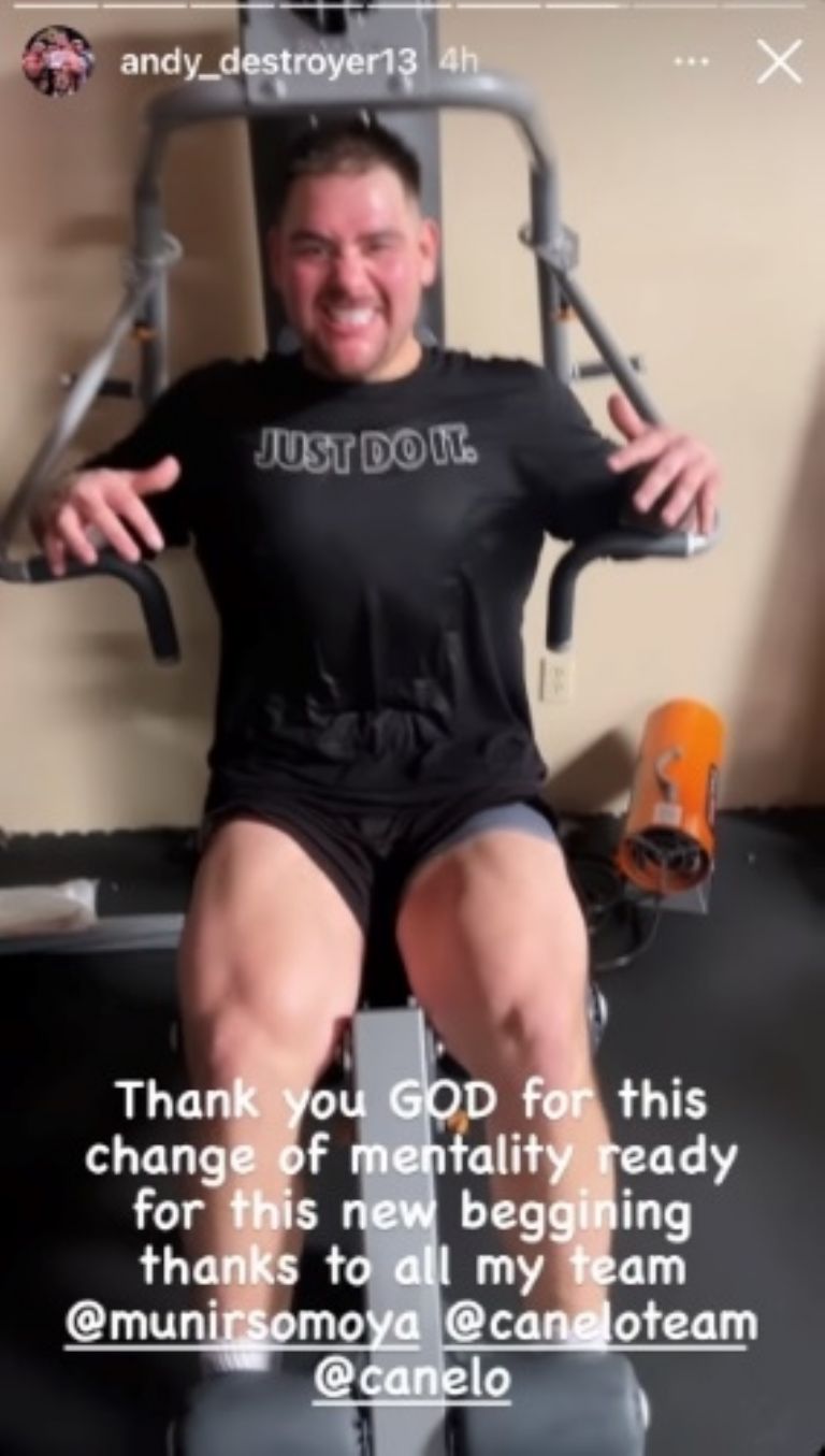 Andy Ruiz subió una fotografía a su cuenta oficial de Instagram, en la que también le dio las gracias al preparador físico Munir Somoya y al histórico boxeador Saúl Álvarez.
