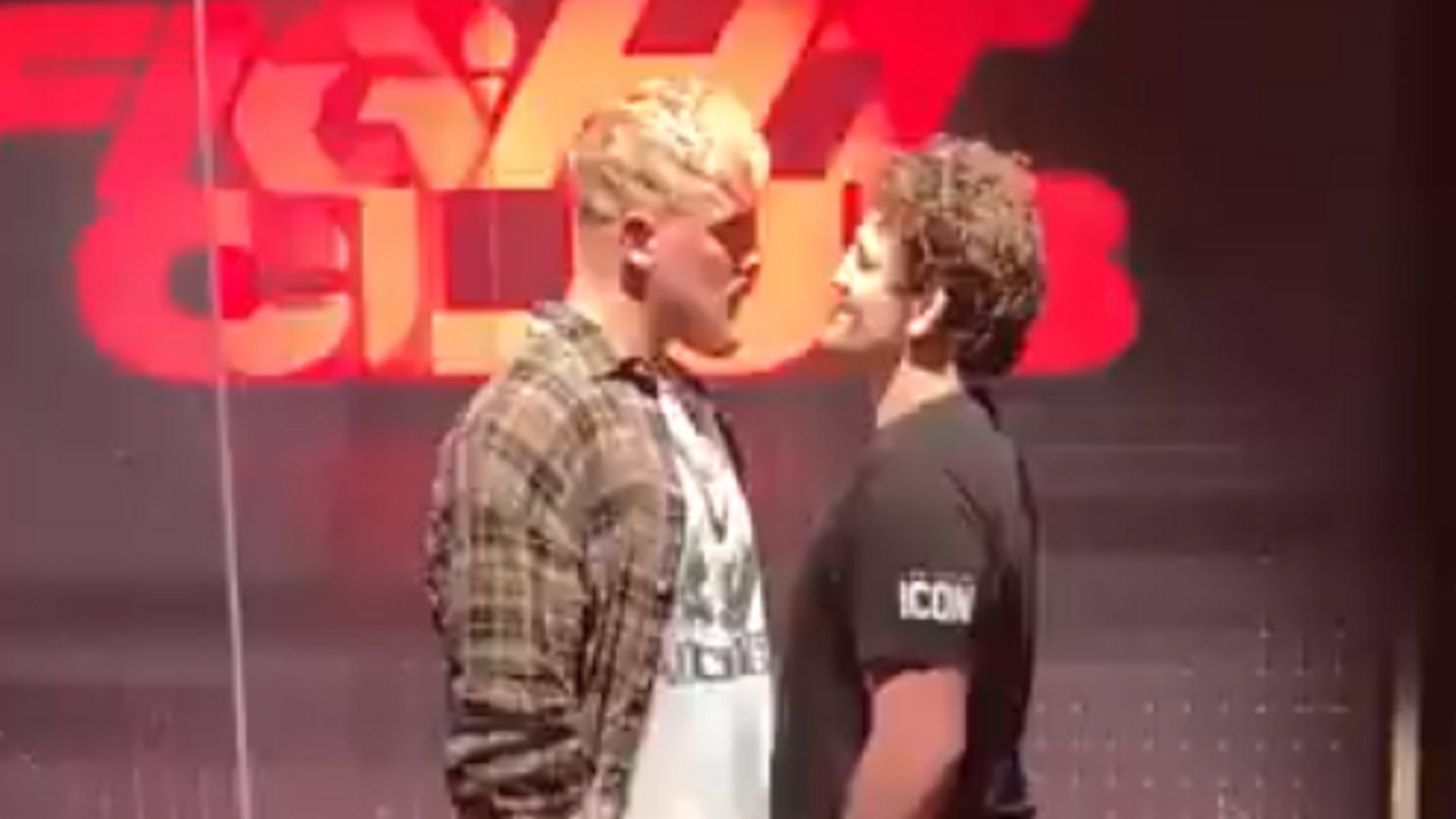 Pero al momento de retirarse, Ben tira un manotazo al rostro del youtuber, en forma de desprecio, la reacción de Paul fue darle un golpe en el estomago un empujón, que sólo causaron más risa al expeleador.