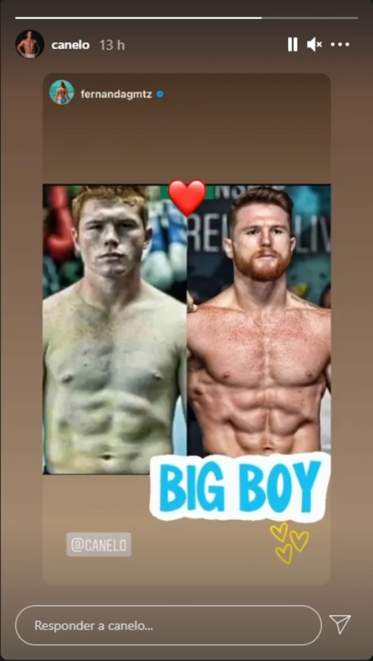 Saúl Álvarez compartió en sus Instagram Stories una imagen en la cual se pude apreciar claramente el radical cambio del paso de los años y arduo trabajo en el gimnasio en compañía de Eddy Reynoso.