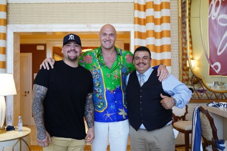 Andy Ruiz y Tyson Fury se tomaron una fotografía al lado del reconocido entrenador Jorge Capetillo y el excampeón de los pesos completos la subió a su cuenta oficial de Instagram.