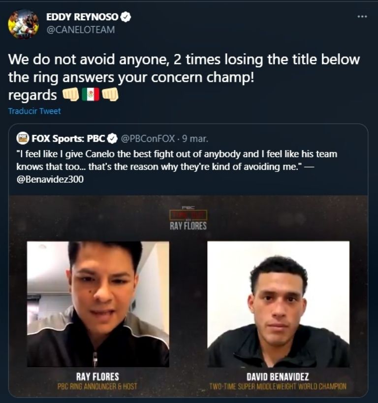 Estas palabras de Reynoso han llegado luego de varias críticas por parte de José Benavídez, quien no sólo pidió una oportunidad para su muchacho, sino que hasta tiró munición gruesa contra el Canelo. Ahora, nuevamente recogió el guante para arremeter una vez más contra el boxeador de Jalisco.