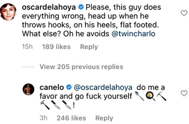 Y en las últimas horas, estalló la bomba y lo peor es que esta vez Canelo no dudó en responder. La pelea se dio a través de comentarios en redes sociales, luego de una publicación de la cuenta de Instagram SupremeBoxing.