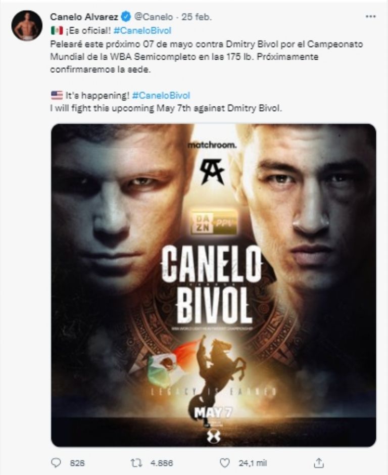 Cabe destacar que, antes de este anuncio, Matchroom Boxing le ofreció 85 millones de dólares para los enfrentamientos ante Bivol y Golovkin; sin embargo, de concretarse esta tercera batalla el nacido en Guadalajara podría superar sin problemas los cien millones de dólares, obteniendo con ello un año impresionante en cuanto a ganancias se refiere.