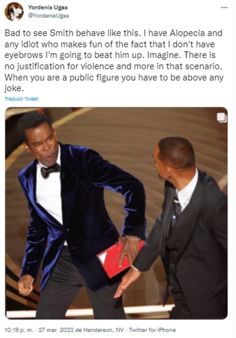 Aprovechando el impacto que tiene en el mundo de las redes sociales, Yordenis Ugás, actual Campeón Mundial Wélter de la Asociación Mundial de Boxeo, le mandó un contundente mensaje a Will Smith, pues cree que tiene la capacidad suficiente para dar su opinión considerando que él, al igual que Jada, sufre de alopecia.