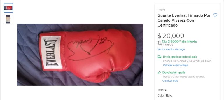 El precio de ese par de guantes puede parecer bajo para lo que ahora ha conseguido el mexicano, pero en el sitio de Mercado Libre, el mismo artículo, sólo que de otra marca, pero que no fueron usados por el mexicano, aunque sí tienen la firma, están en 20 mil pesos, con un certificado de autenticidad de que la rúbrica es efectivamente del peleador tapatío.