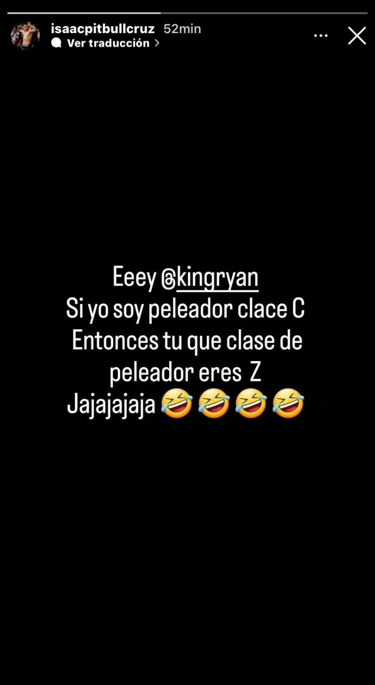 “Oye Ryan García, ¿si yo soy un peleador C, entonces tú que eres, uno Z? JAJAJAJA”, se puede leer en la historia del nacido en la Ciudad de México.