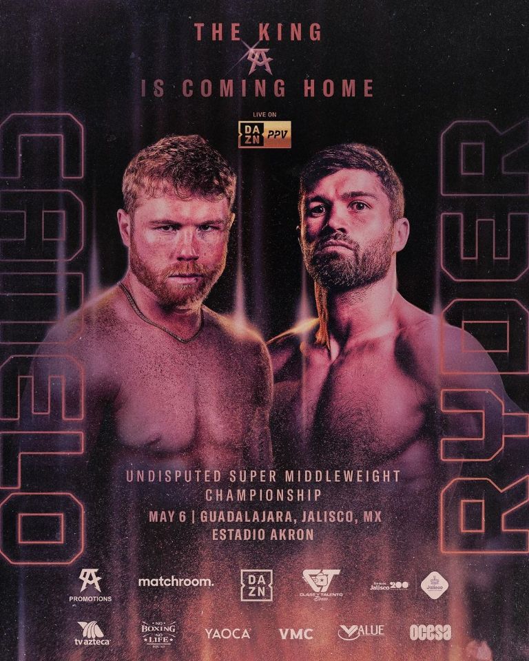 Canelo Álvarez volverá a México en unos días para pelear contra el británico John Ryder. En el Estadio Akron, de las Chivas Rayadas del Guadalajara, el ícono del pugilismo defenderá los cuatro cinturones que lo acreditan como el mejor de las 168 libras. Aún no se había anunciado la cartelera completa del show, pero aquí te la compartimos.