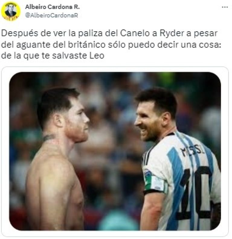 Canelo Álvarez fue profeta en su tierra. Regresó a México para disfrutar de un triunfo con sus compatriotas y no tenía permitido fallar en el intento; por lo que no tuvo problemas con John Ryder. No concretó el nocaut, pero fue superior en todo momento durante el duelo de poder a poder con el británico y los memes no fallaron en redes sociales.