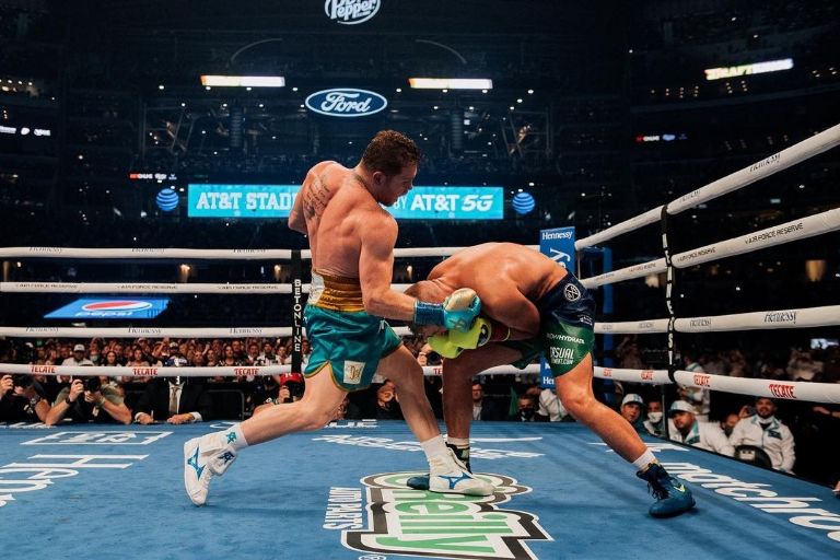 El nombre del exrival corresponde al inglés Billy Joe Saunders, cuya última batalla oficial en los encordados data del 8 de mayo de 2021. En el combate que afrontó dentro del AT&T Stadium de los Vaqueros de Dallas de la NFL, Canelo Álvarez lo dejó sin posibilidad de continuar durante el octavo round.