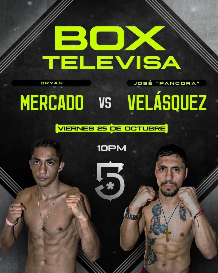 Bryan Mercado continúa como uno de los 10 mejores a nivel mundial entre los supergallos y buscará dar espectáculo la noche de este viernes 25 de octubre cuando enfrente a José Velázquez en la CDMX. El boxeador tricolor llega como amplio favorito por ser el local y tener marca 28-1 (23 KO), del otro lado, su rival andino luce como víctima por registrar 32-10-3 (22 KO). La mesa está puesta para que luzca en la cartelera de boxeo.