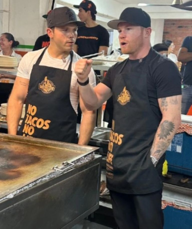 Así como lo leíste: Canelo Álvarez se puso el delantal para, con cuchillo en mano, olvidarse del boxeo y hacerse presente en la taquería que administra junto a su hermano Ricardo en Guadalajara, para ponerse a preparar tacos en fotos y videos que ya inundan las redes sociales y en las que deja claro que no solo sabe todo respecto a la parrilla, sino a tomar también las órdenes de los clientes.