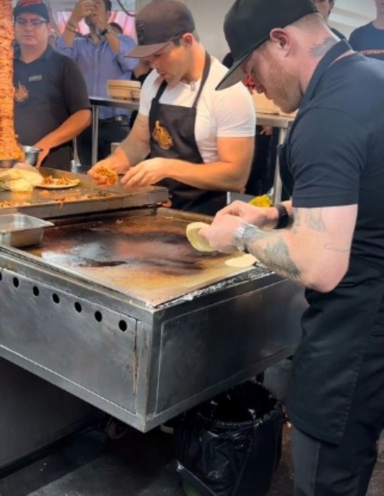 Ya totalmente recuperado de su pelea ante Édgar Berlanga y cuando nadie ni siquiera se lo imaginaba, la noche de este pasado jueves 3 de octubre Canelo Álvarez hizo su repentina aparición en la taquería El Pastor del Rica, donde su hermano Ricardo ya lo esperaba con cuchillo y chaira en mano para, juntos, preparar y servir diferentes tacos a los ahí presentes.