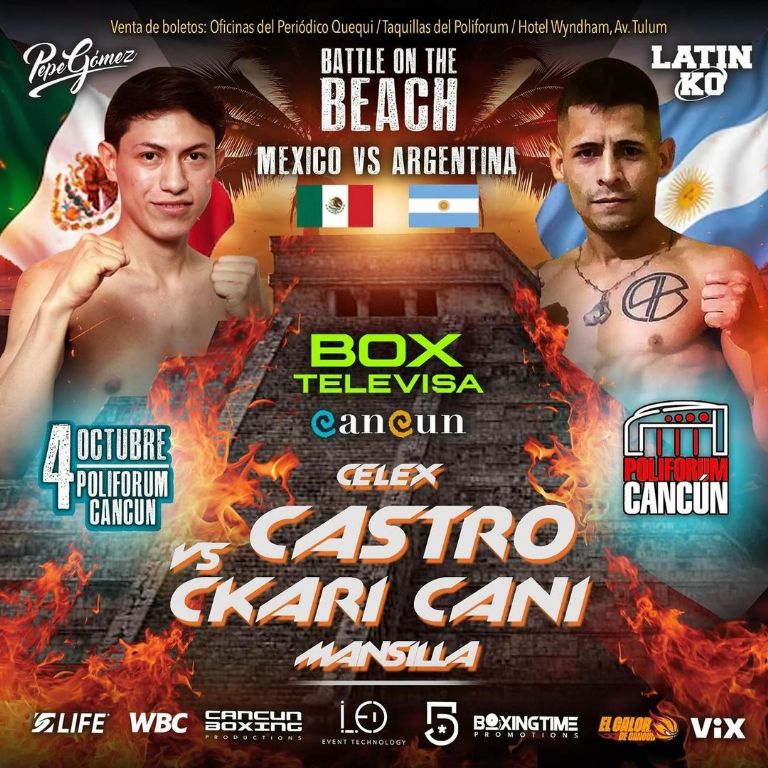 Todo arrancará este viernes 29 de noviembre cuando Celex Castro y Diego ‘Profeta’ Ruiz suban al cuadrilátero en la contienda estelar a celebrarse en Quintana Roo. Celex parte como amplio favorito gracias a su marca invicta 18-0 (14 KO) y pelear en su estado natal, es uno de los 25 mejores supergallo del ranking mundial. Se medirá en el cuadrilátero a un oponente argentino que luce como víctima por su foja 25-10-1.