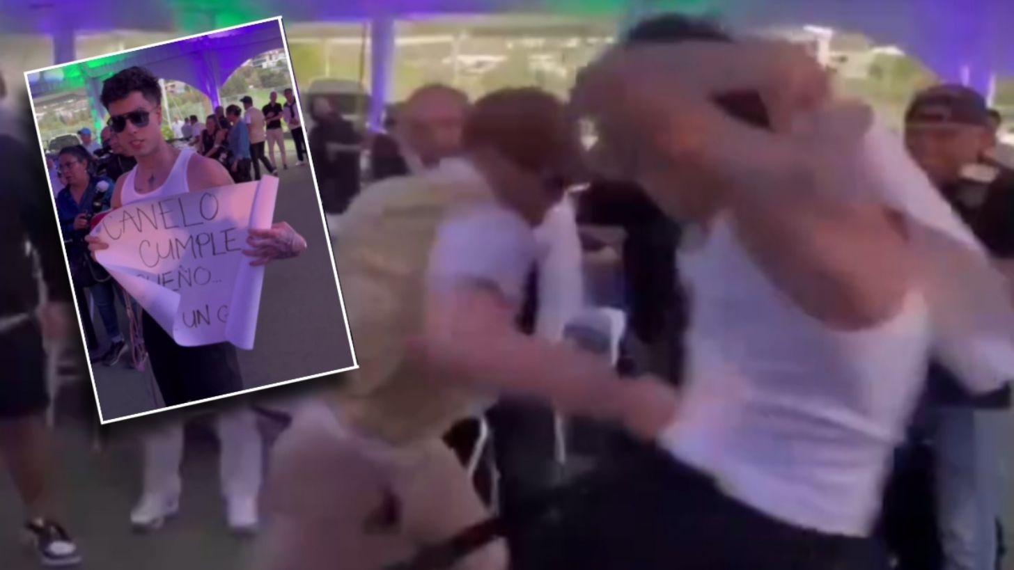 En un video subido a redes sociales y que ha recibido ya un sinnúmero de “likes”, se ve cómo Naim Darrechi se planta frente a la mesa del Canelo Álvarez con una pancarta que decía: “Canelo, cumple mi sueño y dame un gancho al hígado”, a lo que el tapatío no se pudo resistir, se levantó del asiento y se dirigió al influencer.