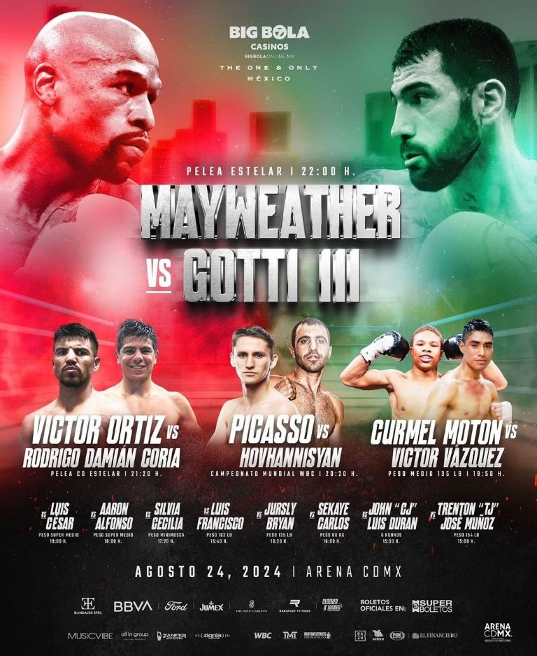Previo a su combate ante Gotti, Floyd Mayweather Jr. fue claro al señalar que no siente presión de su regreso al ring luego de retirarse con una marca invicta en 50 peleas profesionales, aunque afirmando desconocer si la pelea contra Julio César Chávez se vaya a realizar. De ser así, dijo, no tendría problema en vencer al mexicano y hasta a su hijo en una misma noche... ¡Y sin manos!