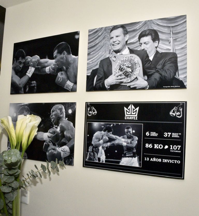 La habitación también contaba con varias fotografías de Julio César Chávez a través de sus años como boxeador, así como sus mejores peleas y su coronación como campeón.