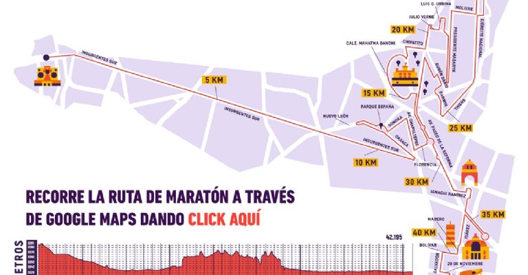 La ruta constará de un total de 42 kilómetros y 195 metros que empezará desde la Avenida Insurgentes (cerca de la Biblioteca Central de la UNAM) y terminará en el Zócalo Capitalino.