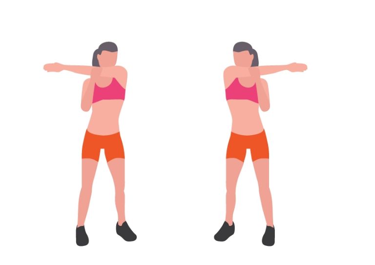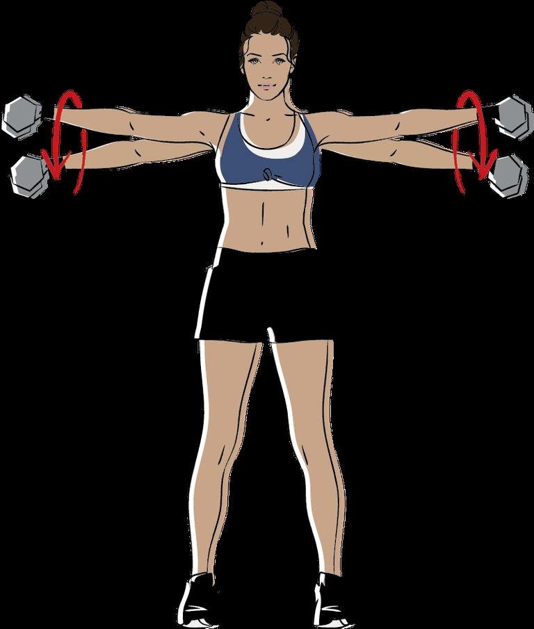 Puedes utilizar mancuernas de bajo peso o, si el dolor es fuerte, prescindir de ellas.