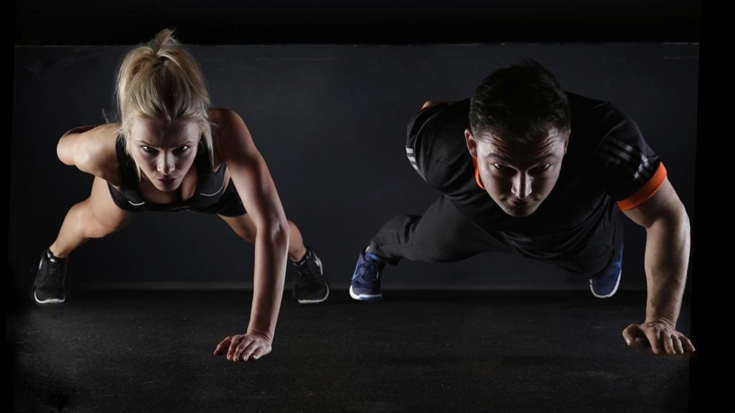 Flexiones.- En el suelo, sobre una colchoneta, realiza 10 fondos de pecho o flexiones acercando el pecho al suelo para ejercitar los pectorales y los brazos. Con las manos, pecho y puntas de los pies apoyadas, los codos deben estar a 90 grados y los pies al ancho de la cadera.